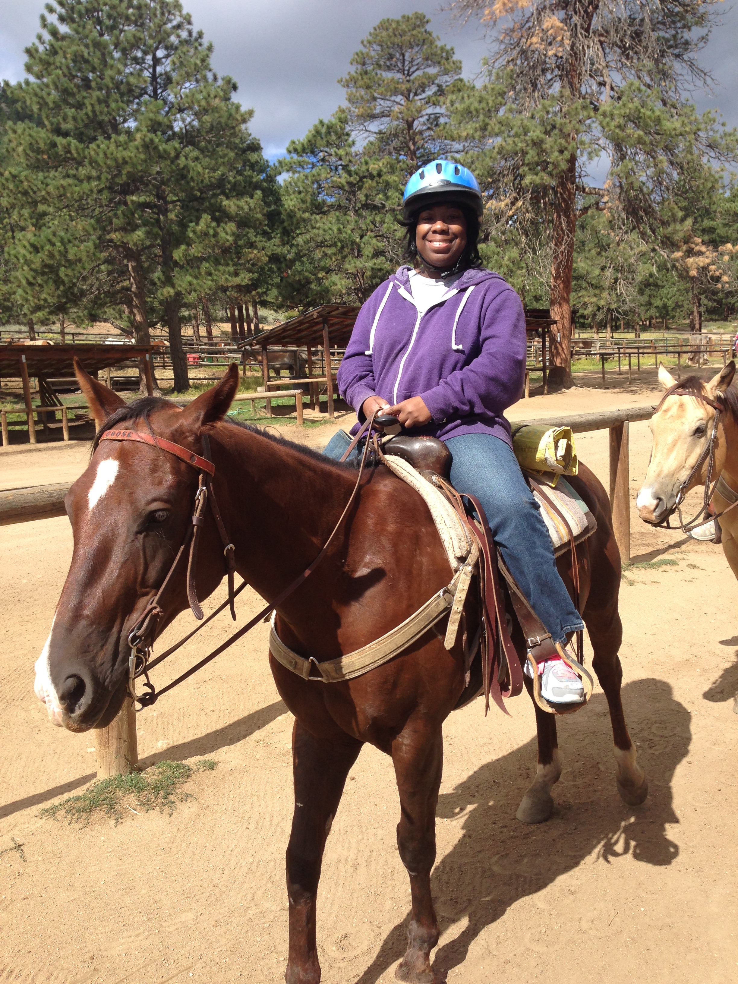I didn’t get a chance to go hiking in Rocky Mountain National Park, but I did go horseback riding. Jackson Stables is located on the property, and they even cater to beginning riders (like myself). The trails are on the Y’s property, then you cross over into the amazingly beautiful RMNP. By the way, the Y is bordered on three sides by RMNP.