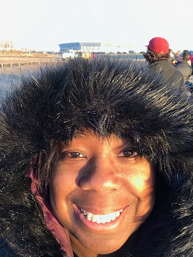 Selfie taken in Pontiac, Michigan on December 3, 2017. The Pontiac Silverdome is in the background.
