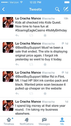 I went to Best Buy the day before and made a purchase, but I forgot to buy ink for my printer. So on the 21st, I stood in line, in the computer area, to get a price check on the packs of HP ink I was holding. The ink was on sale the day before on the store’s website.